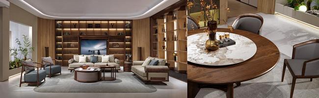 木材还常与温润牛皮组合,演绎极致的奢华感;与冷冽大理石叠搭,以至简形廓,展露雅奢魅力;或是与时尚金属相撞,碰出满满的摩登范儿。