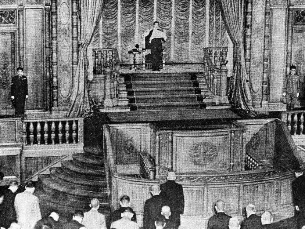 1945年8月15日,日本宣告无条件投降。这是8月14日,日本天皇向议会宣布接受《波茨坦公告》,向盟国投降。